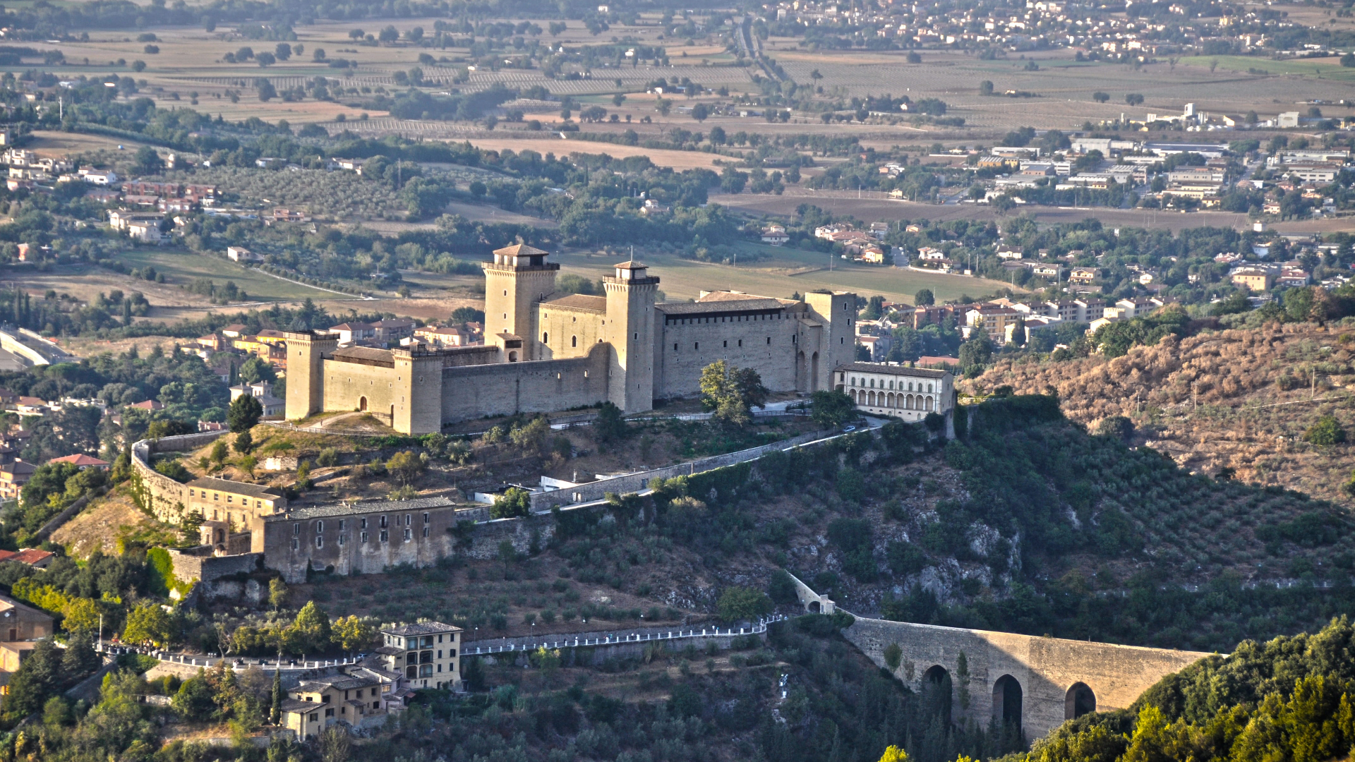 Spoleto è situata all'estremità meridionale della Valle Umbra, vasta pianura alluvionale, generata in epoca preistorica dalla presenza di un vasto lago, il lacus Umber, prosciugato definitivamente nel Medioevo, dopo il suo impaludamento, con delle opere di bonifica.